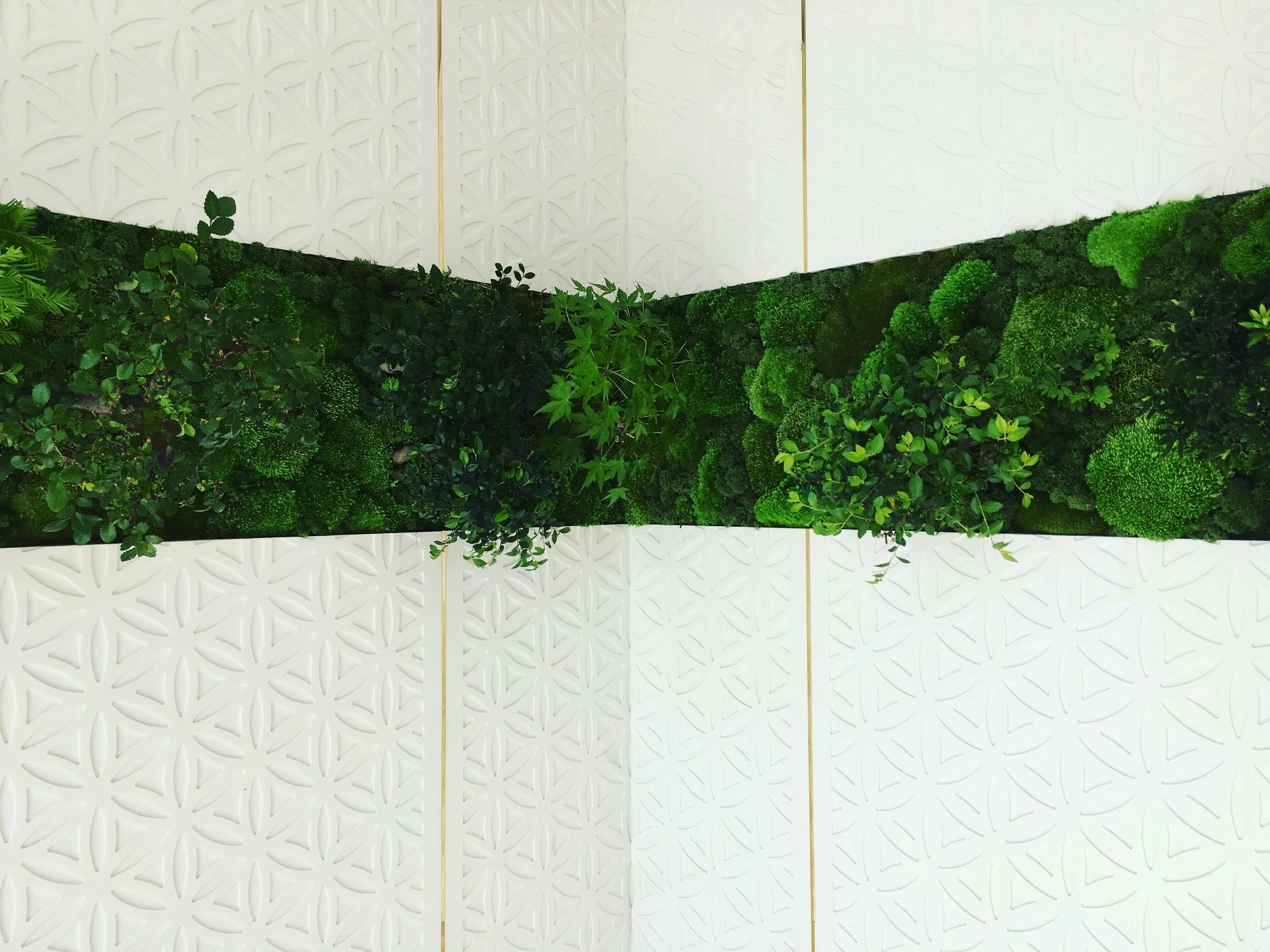 Creation of a modern plant mural, evoking a celebration of nature for The Harmonist cocktail party. Cannes Film Festival. Club Albane. Set designer Arno ROTH